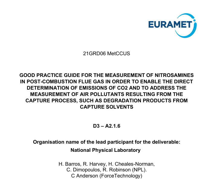 This guide identifies available manual or continuous emissions (instrumental) monitoring methods for the emerging pollutants (nitrosamines and amines) potentially emitted by PCC plants. When possible, performance characteristics are presented as well as suggested sampling durations. The guide also identifies limitations and adjustments required to the methods (where relevant) due to the unique PCC flue gas characteristics of PCC plants’ flue gas. It is worth noting that the methods identified for the measurement of nitrosamines (and amines), have not been fully validated for the monitoring (sampling and measurement) of these pollutants. Therefore, currently, any result from any of these methods is subject to a large amount of unquantifiable uncertainty. Finally, two different IR-based instruments have been assessed to measure post-capture CO2 concentrations in simulated PCC stack conditions (Task 2.1.5 in the Annexe 4).