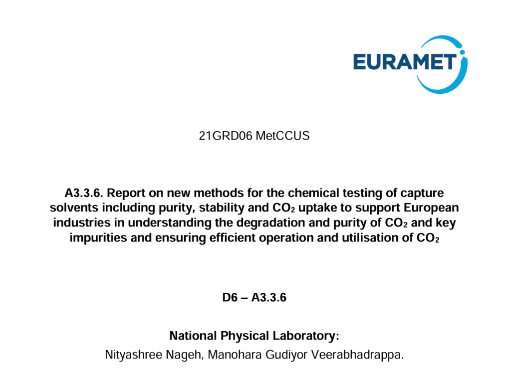 D6 – Report on new methods for the chemical testing of capture solvents, including purity, stability and CO2 uptake to support European industries in understanding the degradation and purity of CO2 and key impurities and ensuring efficient operation and utilisation of CO2